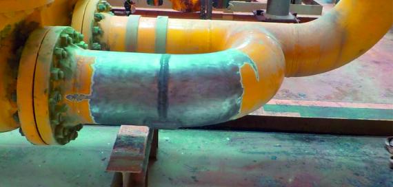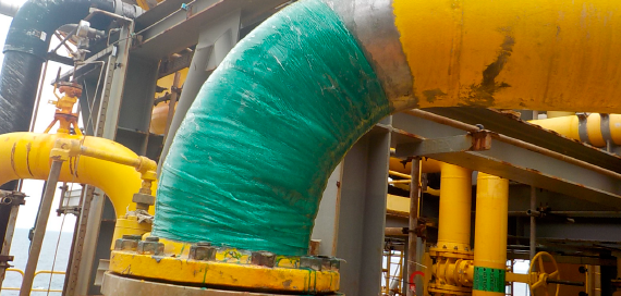 Maxcase #15 - Oil & Gas: Application of fiberglass reinforced coating resistant to high pressures and high temperatures, in leaky gas pipes on an oil platform.