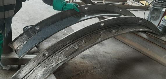 Maxcase #01 - Mining Company: Application of coating with metallic polymers and industrial bands on 20” stainless steel pipe bends in the mining industry.